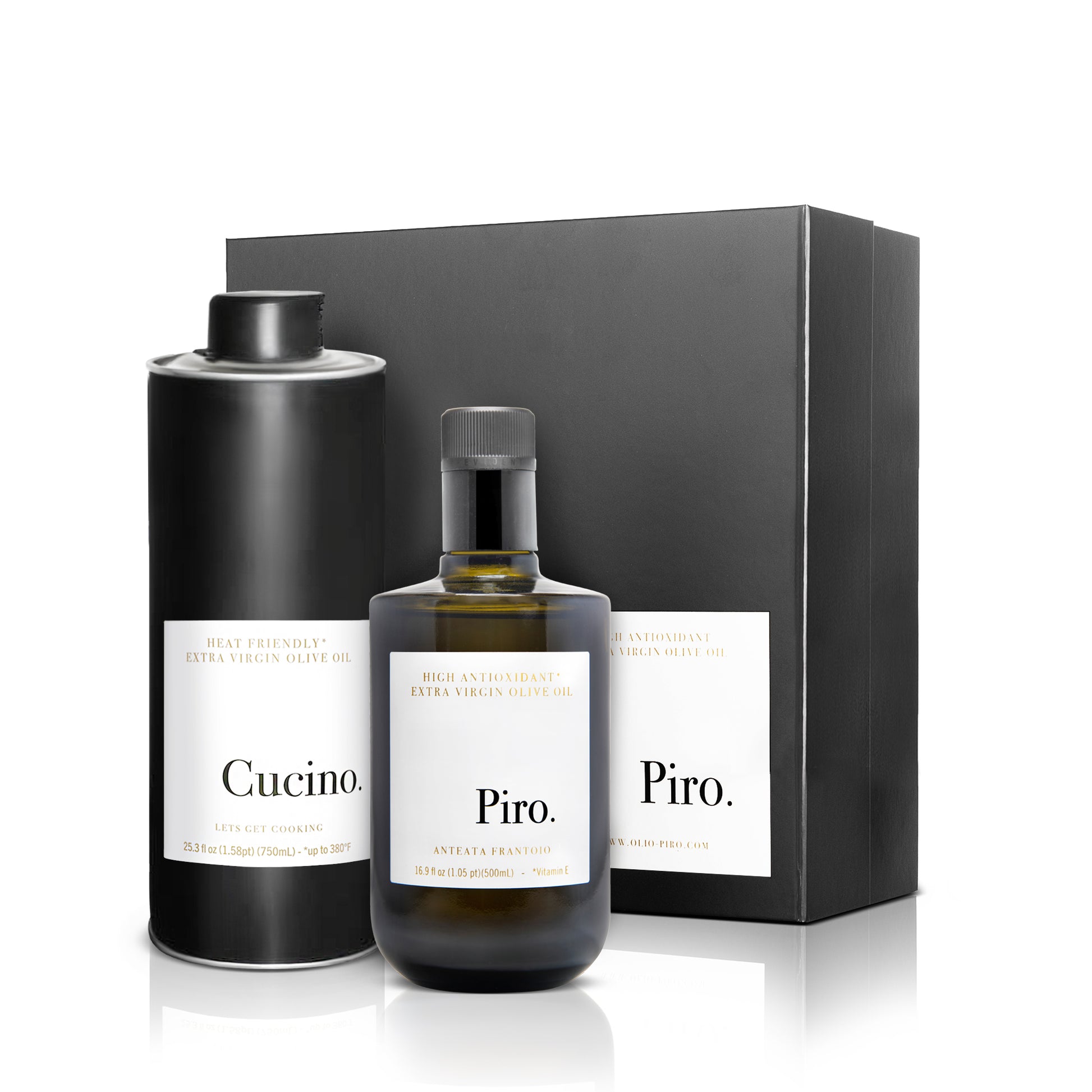Give the gift of premium ingredients to a home chef's pantry, featuring a 500ml bottle of Piro Extra Virgin Olive Oil for a finishing touch of excellence and a 750ml bottle of Cucino Extra Virgin Olive Oil, crafted for cooking at every heat.